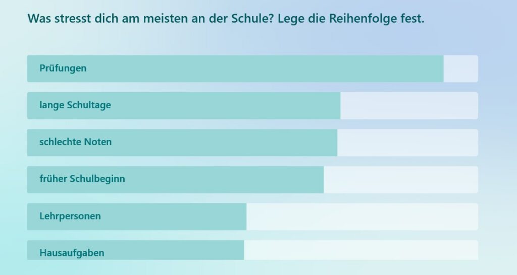 «Octoplus» wollte von den Lernenden wissen, ob sie gestresst sind. Rund 60 Schüler*innen haben unsere Fragen zu Themen wie Stress, Gesundheit und Schlaf, mit und ohne Bezug zur Schule, beantwortet. Unten findet ihr die Ergebnisse dazu.